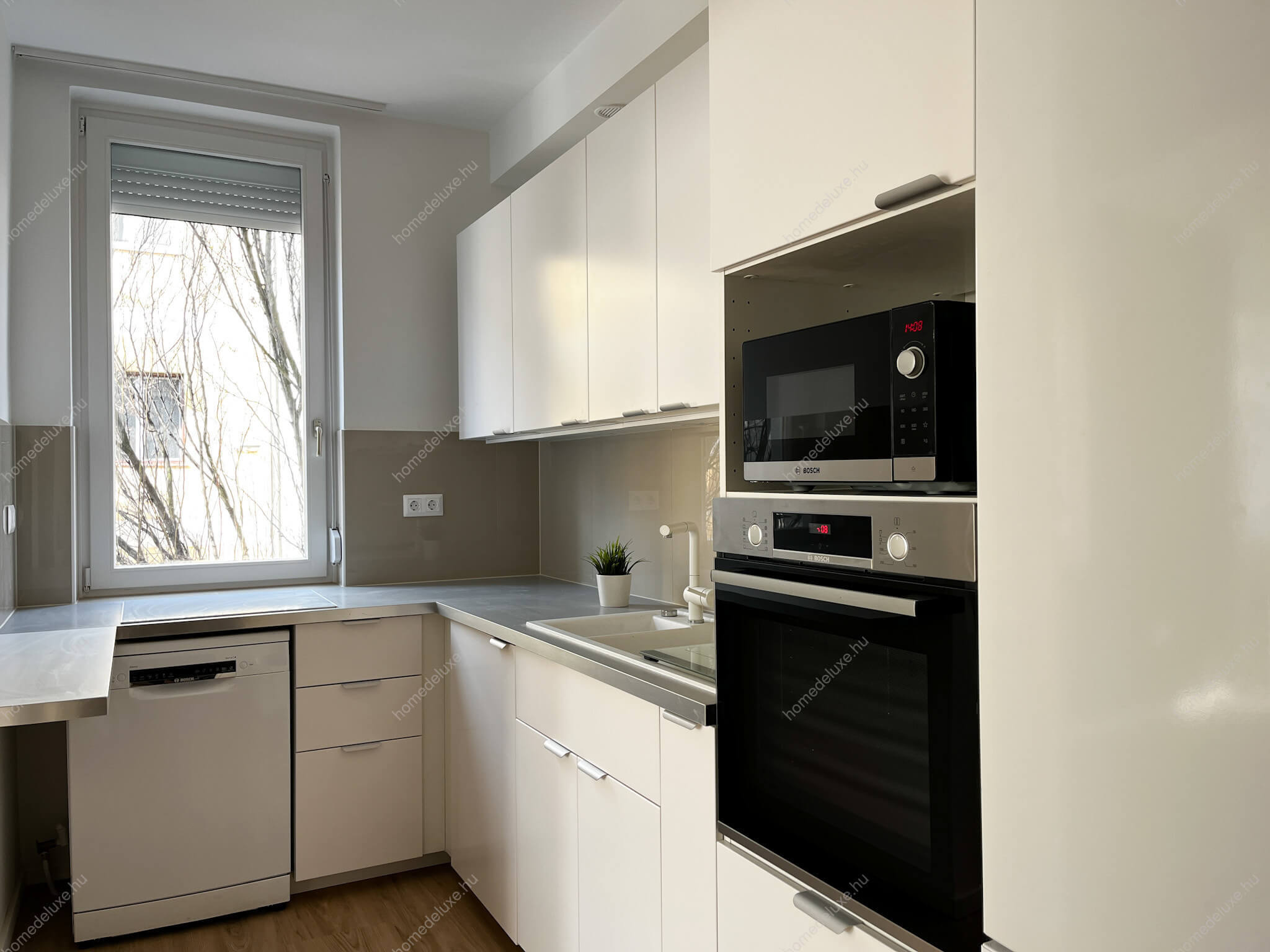 - beépített konyhabútor konyhagépekkel (hűtő, főzőlap, mosogatógép, sütő, mikró)Az ingatlan minimum 1 évre bérelhető, 2 havi kaucióval!